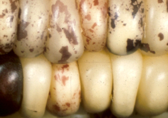 To understand why this is important, it helps to know something about transposons. Transposable elements, initially known as ‘jumping genes’, were first identified by Nobel laureate Barbara McClintock in maize kernals. They are essentially segments of DNA that can either copy (or remove themselves entirely), from one location to another. Whilst not entirely a random process, a transposon may well jump into an active gene and disturb its normal operation. The images shows variation in pigmentation in maize kernals as a result of transposable elements jumping in and out of genes responsible for pigmentation.